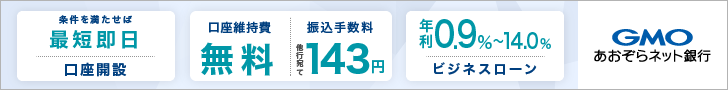GMOあおぞらネット銀行(個人事業主口座) 割引額:800円